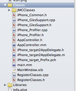 Choose the AppController.mm file in the Classes directory. We're going to edit this to integrate JIRA Connect.